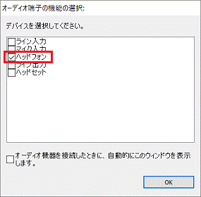 「ヘッドフォン」をクリックし、チェックを付けます。