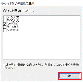 - 「OK」ボタンをクリックし、「デバイスを選択してください。」を閉じます。