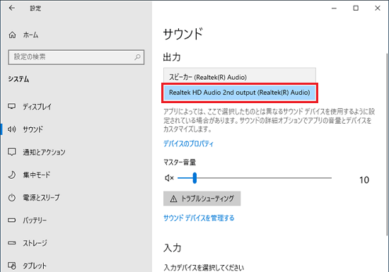 (「Realtek HD Audio 2nd output」が表示されている場合)