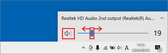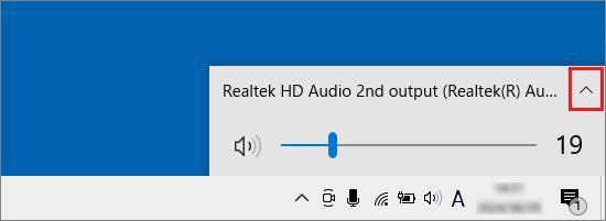 - 通知領域に表示されている「スピーカー」アイコンをクリックします。