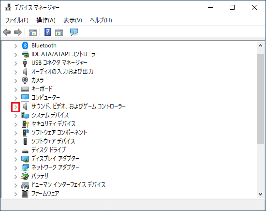 「サウンド、ビデオ、およびゲーム コントローラー」の左側にある矢印をクリックします。