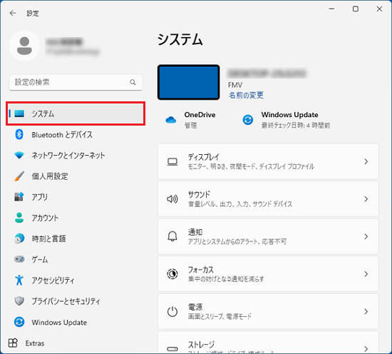 」(ナビゲーションを開く)→「システム」の順にクリックします。