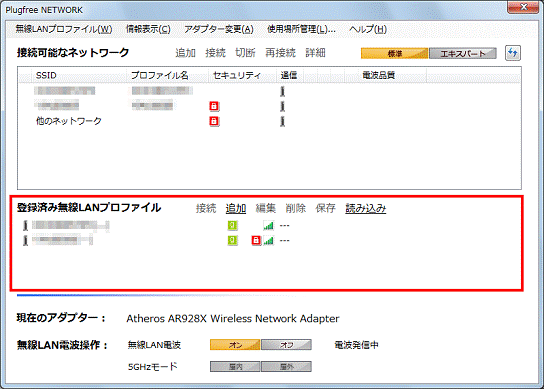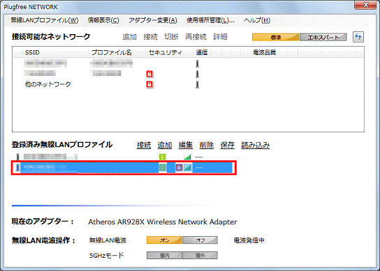 Windows XP Professionalダウングレードモデルで、Windows XP Professional使用時は、Plugfree NETWORKでプロファイル名や、セキュリティの種類などを変更できません。