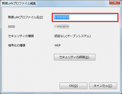 必要に応じて「無線LANプロファイル名」の欄に、新しいプロファイル名を入力します。
