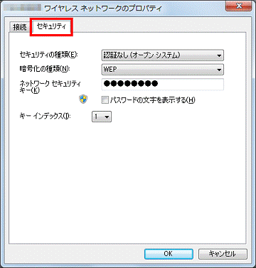 - 「(SSID名)ワイヤレスネットワークのプロパティ」が表示されます。