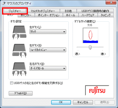 FMV-BIBLO LOOX UシリーズのALPS フラットポイントはジェスチャー機能に対応していません。 - 2009年冬モデル