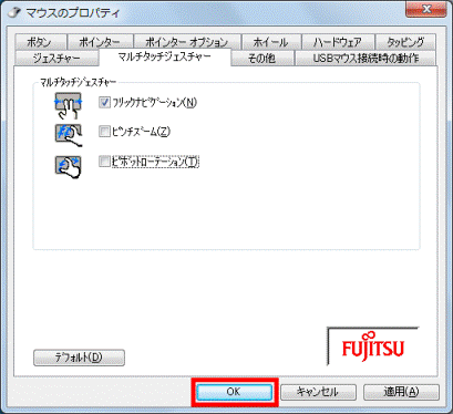 - 「マルチタッチジェスチャー」タブをクリックします。