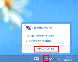[Windows 8.1/8] 通知領域の旗のアイコンに「×」が表示されました。