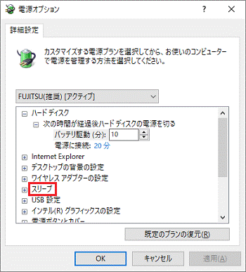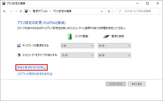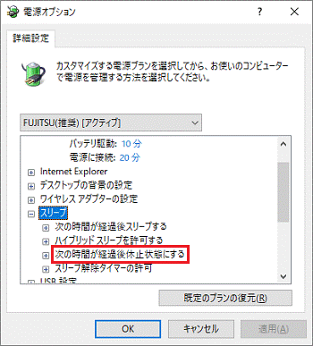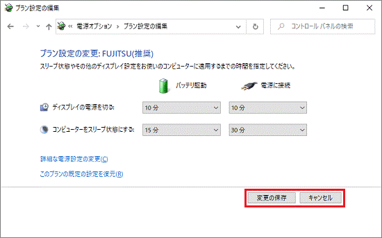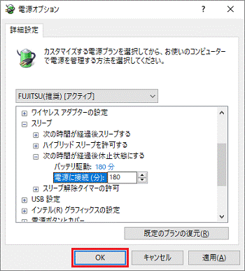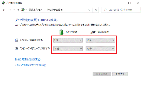 (FUJITSU(推奨)の場合) - 「ディスプレイの電源を切る」、「コンピューターをスリープ状態にする」のうち、変更したい項目にある「