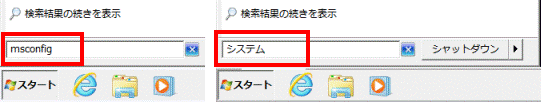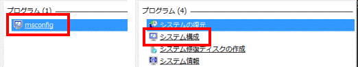 「msconfig」と入力した場合は「msconfig」を、「システム」と入力した場合は「システム構成」をクリックします。