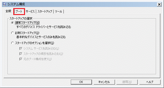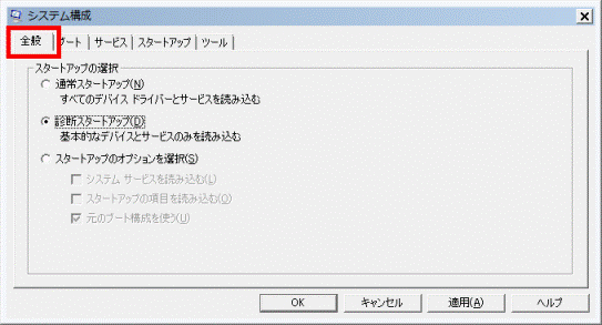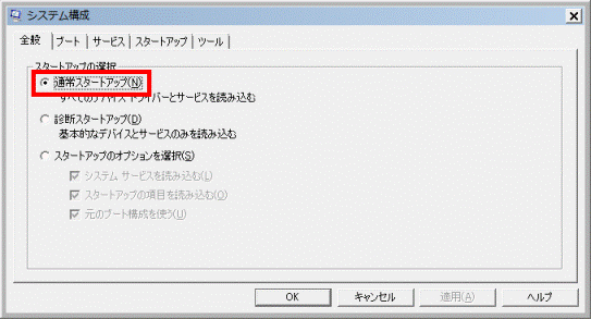 「通常スタートアップ」が選択されていた場合は、次の手順へ進みます。