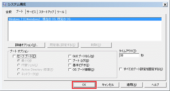 - 前回正常起動時の構成で起動した場合、前回の起動時に実施した設定の変更やアプリケーション、ドライバーのインストール情報は失われます。