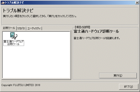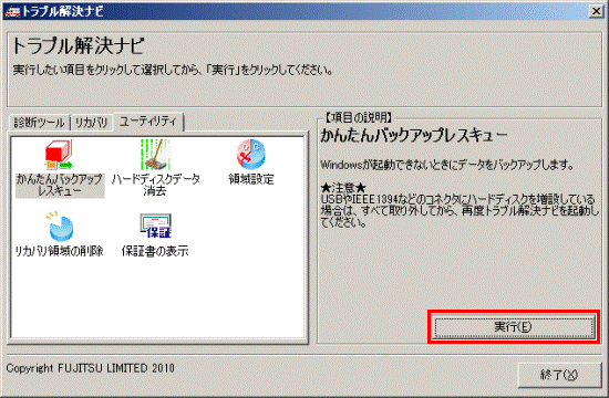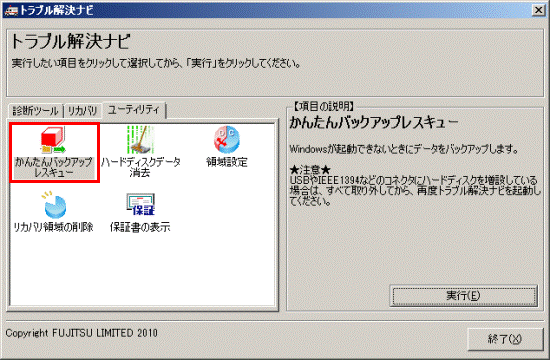 かんたんバックアップレスキューは、トラブル解決ナビの「ユーティリティ」から起動します。