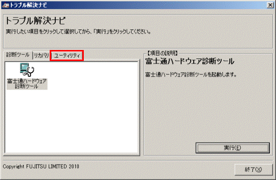 - 「トラブル解決ナビ」にある「ユーティリティ」タブをクリックします。