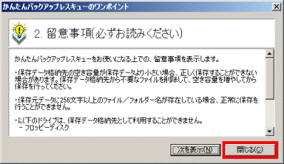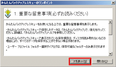 - 「かんたんバックアップレスキューのワンポイント」が表示されます。