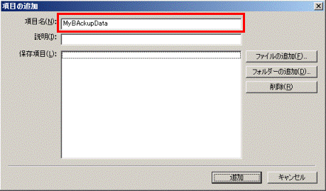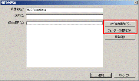 「説明」は省略できます。 - 「ファイルの追加」ボタン、または「フォルダーの追加」ボタンをクリックします。