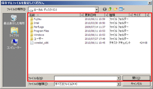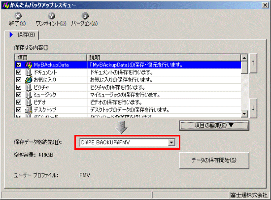 - 「保存データ格納先」に、次のように表示されていることを確認します。