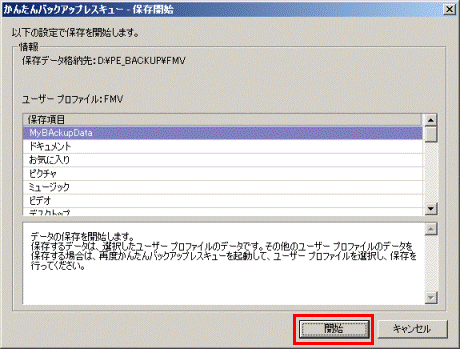 - 「かんたんバックアップレスキュー - 保存開始」が表示されます。