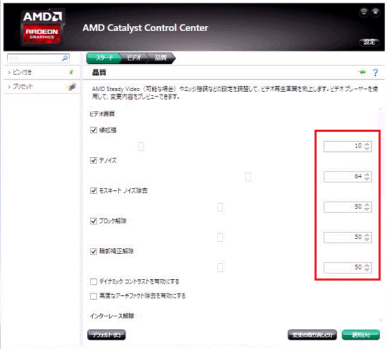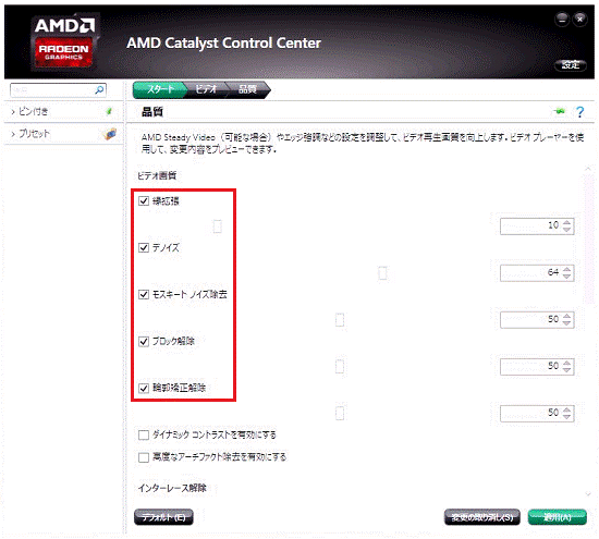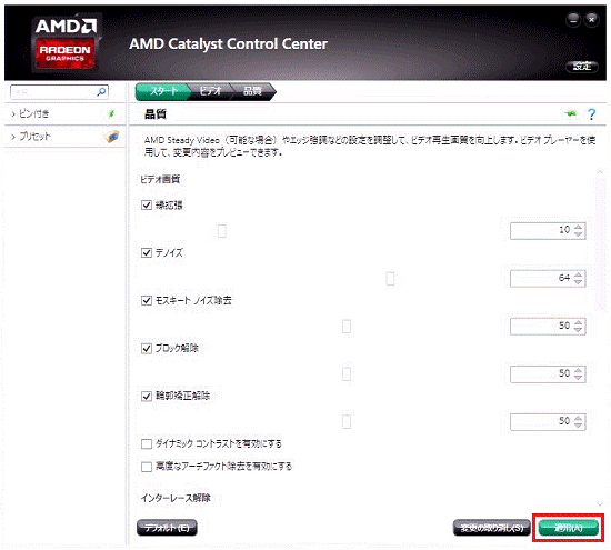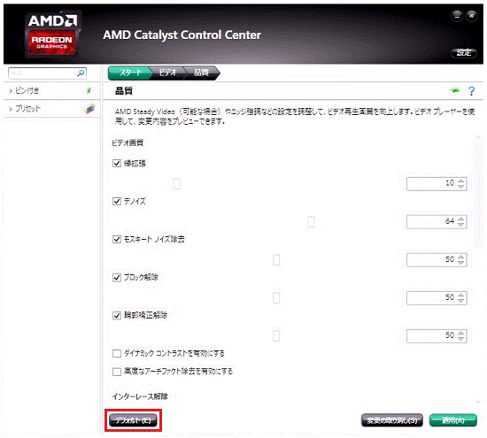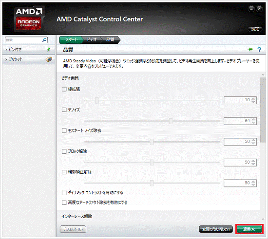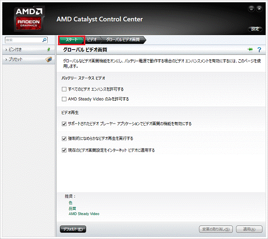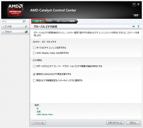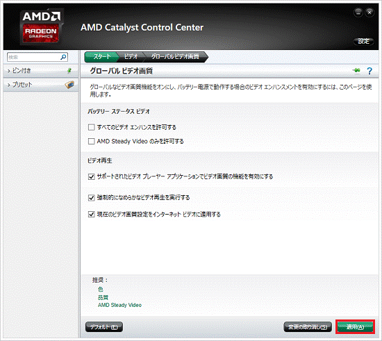 「グローバル ビデオ画質」が表示されていない場合は、手順6.に進みます。