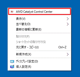 - デスクトップの何もないところを右クリックし、表示されるメニューから「AMD Catalyst Control Center」をクリックします。