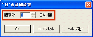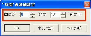 「間隔」で「1回のみ」以外を選択した場合は、詳細設定ボタンをクリックし、細かく指定します。- 「時間」を選択した場合は、何時間何分毎に実行するかを指定します。
