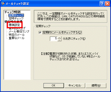 [ワンタッチボタン] メールソフトを起動していない状態で、定期的にメールチェックする方法を教えてください。(新しいウィンドウで表示)
