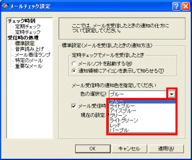 [ワンタッチボタン] メールソフトを起動していない状態で、定期的にメールチェックする方法を教えてください。(新しいウィンドウで表示)手順3通知領域にアイコンを表示する設定にする