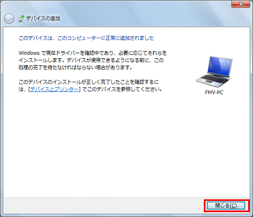 - 「このデバイスは、このコンピューターに正常に追加されました」と表示されます。