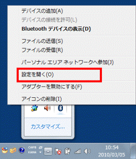 接続するパソコン、接続先のパソコンともに電源を入れて、Bluetoothデバイスが使える状態に設定します。