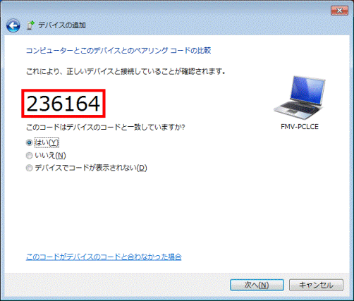 - 「コンピューターとこのデバイスとのペアリング コードの比較」が表示されます。