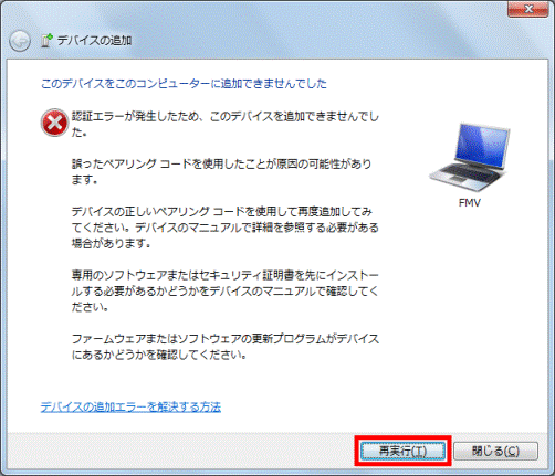 「Bluetooth デバイスが接続を試行しています」と表示されます。