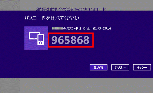 - Windows 8をお使いの場合は、パスコード(6桁の数字)が表示されます。