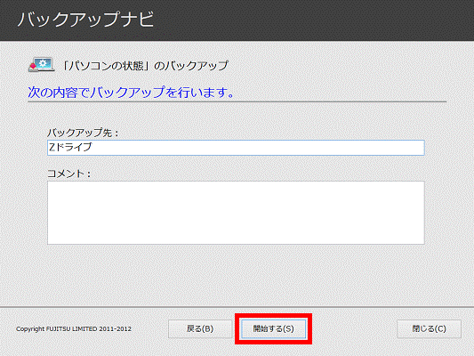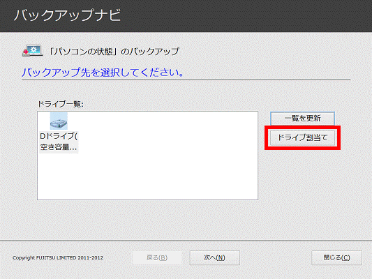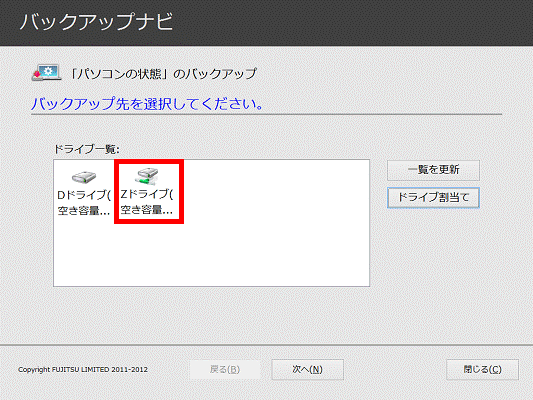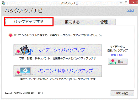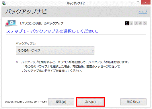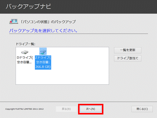 [バックアップナビ] 「パソコンの状態」をネットワークドライブにバックアップする方法を教えてください。(2012年10月発表モデル〜2015年5月発表モデル)