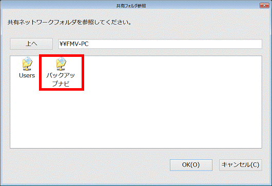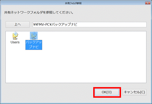 バックアップのデータを保存する、共有フォルダーをクリックします。