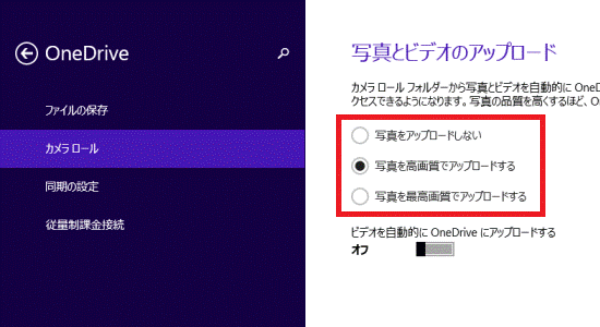 OneDrive(SkyDrive)に保存されません。 - 「写真を高画質でアップロードする」が有効な場合