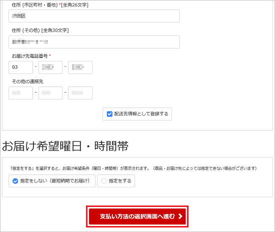 配送先情報を入力・選択します。