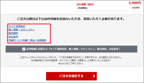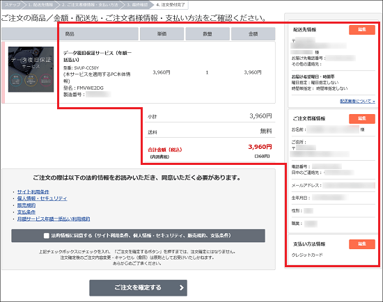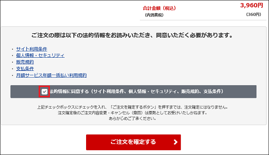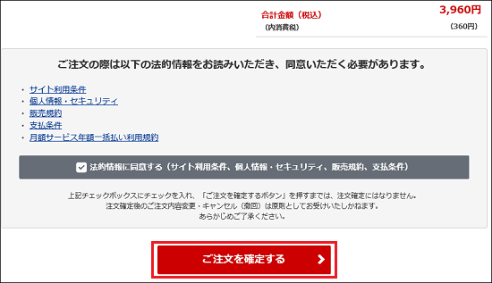 - 内容に間違いがなければ、「ご注文を確定する」ボタンをクリックします。