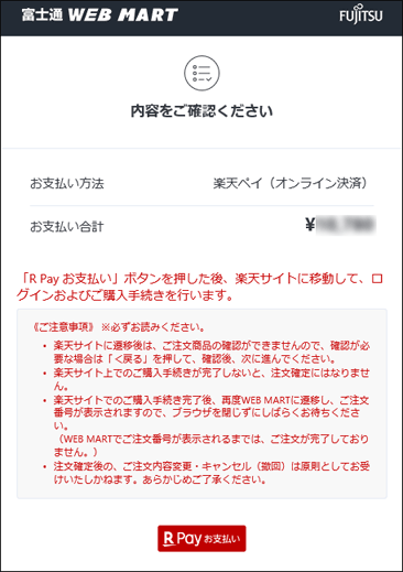 - 「ご注文の商品/金額・配送先・ご注文者様情報・支払い方法をご確認ください」と表示されます。