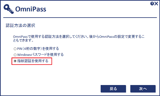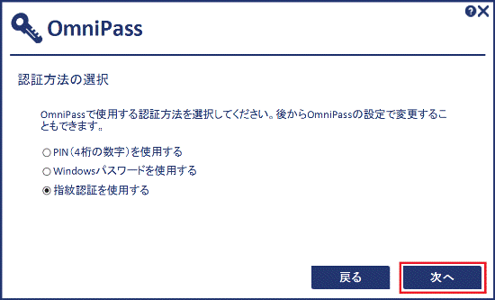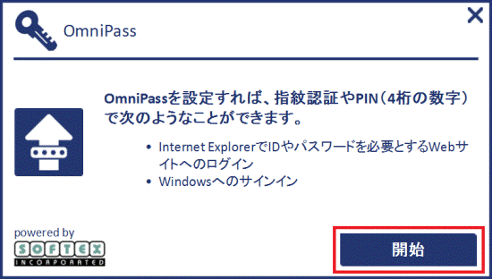 OmniPassについて教えてください。(Windows 8.1/8)PIN(4桁の数字)や暗証キー、または指紋を登録する方法は、次のとおりです。