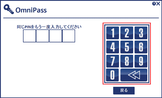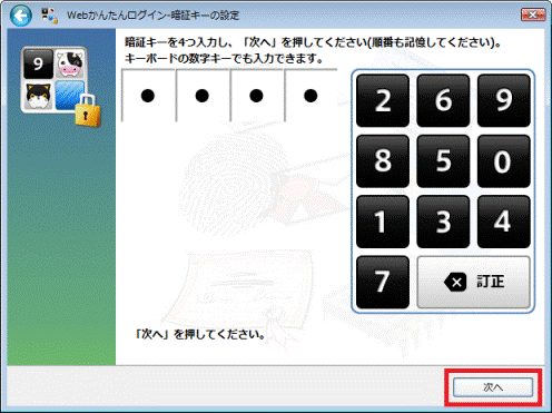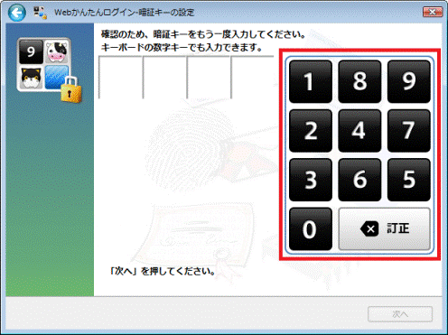 キーボードの数字キーを押すか、右の数字ボタンをクリックして、もう一度、数字4桁を入力します。