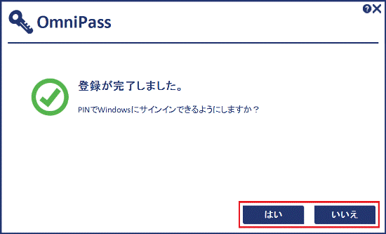 (「最後の手順」と表示される場合) - 「OmniPassの設定が完了しました」と表示される場合