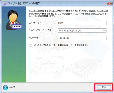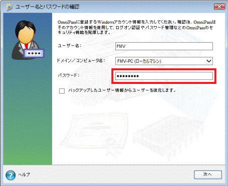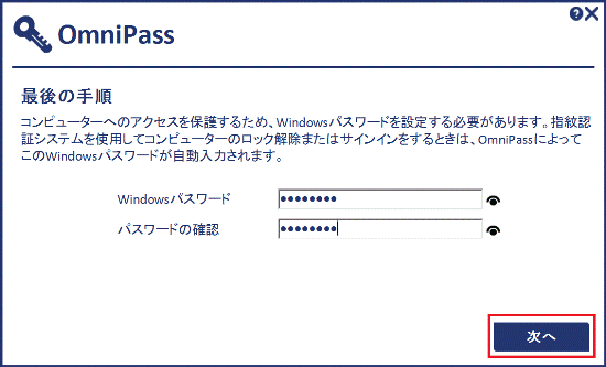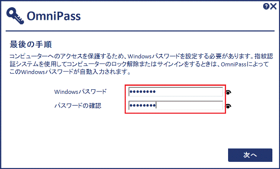 次の手順で、Windows パスワードを設定してOmniPassとして使用します。