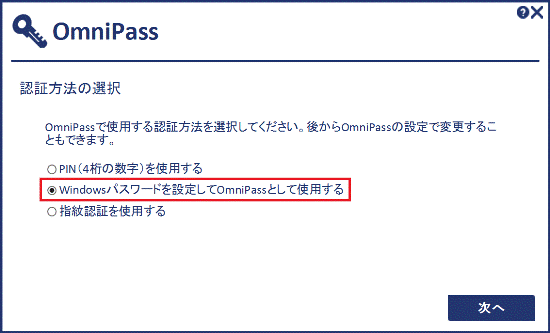 - 「Windows パスワードを設定してOmniPassとして使用する」をクリックします。