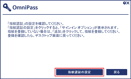 - 「「指紋認証」の設定を確認してください。」と表示されます。