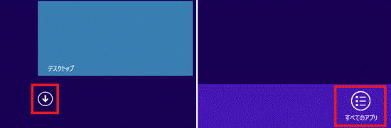 - スタート画面でマウスポインターを動かし、「↓」ボタンが表示されたら、「↓」ボタンをクリックします。