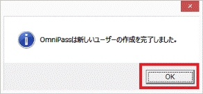 - 「OmniPassは新しいユーザーの作成を完了しました。」と表示されます。