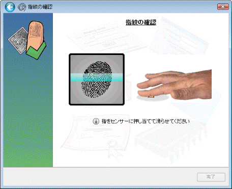 もう一度、指の第1関節を指紋センサーに当て、ゆっくりとスライドし、指紋をスキャンします。