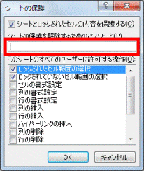 必要に応じて、「シートの保護を解除するためのパスワード」の入力欄に、パスワードを入力します。