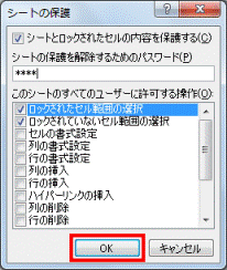 - ここで設定したパスワードを忘れると、シートの保護を解除できません。