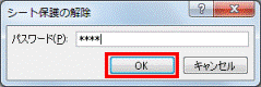 「パスワード」の入力欄に、シートを保護するときに設定したパスワードを入力します。